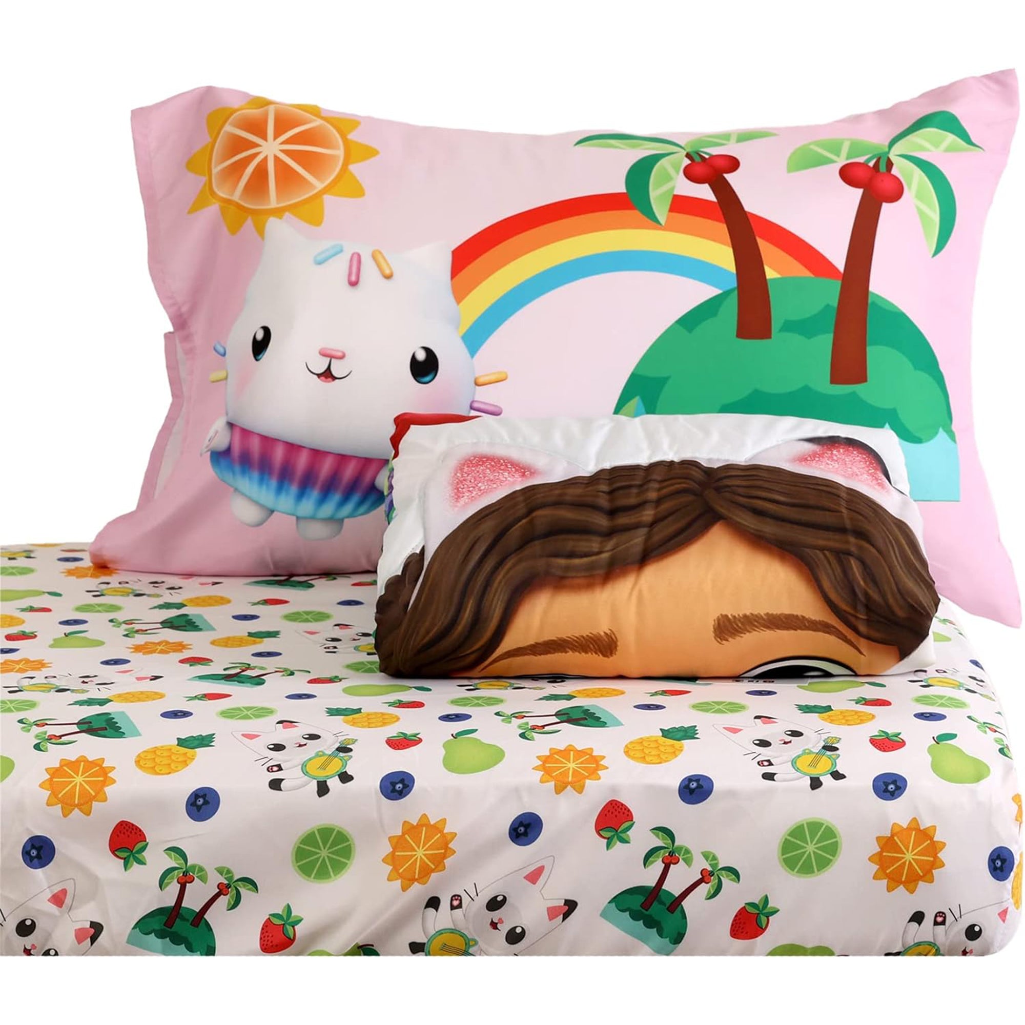 Immerse your toddler in the enchanting world of Gabby's Dollhouse with this vibrant 3-piece sheet set. Featuring a high-definition design of Gabby and her friends, the set includes a reversible comforter, fitted sheet, and pillowcase. The reversible comforter allows for a quick room makeover, showcasing delightful characters on soft microfiber and an all-over print on cozy mink fabric. Crafted from 100% plush polyester, this set ensures year-round comfort for your little one on standard crib mattresses, making it the perfect blend of charm and coziness.