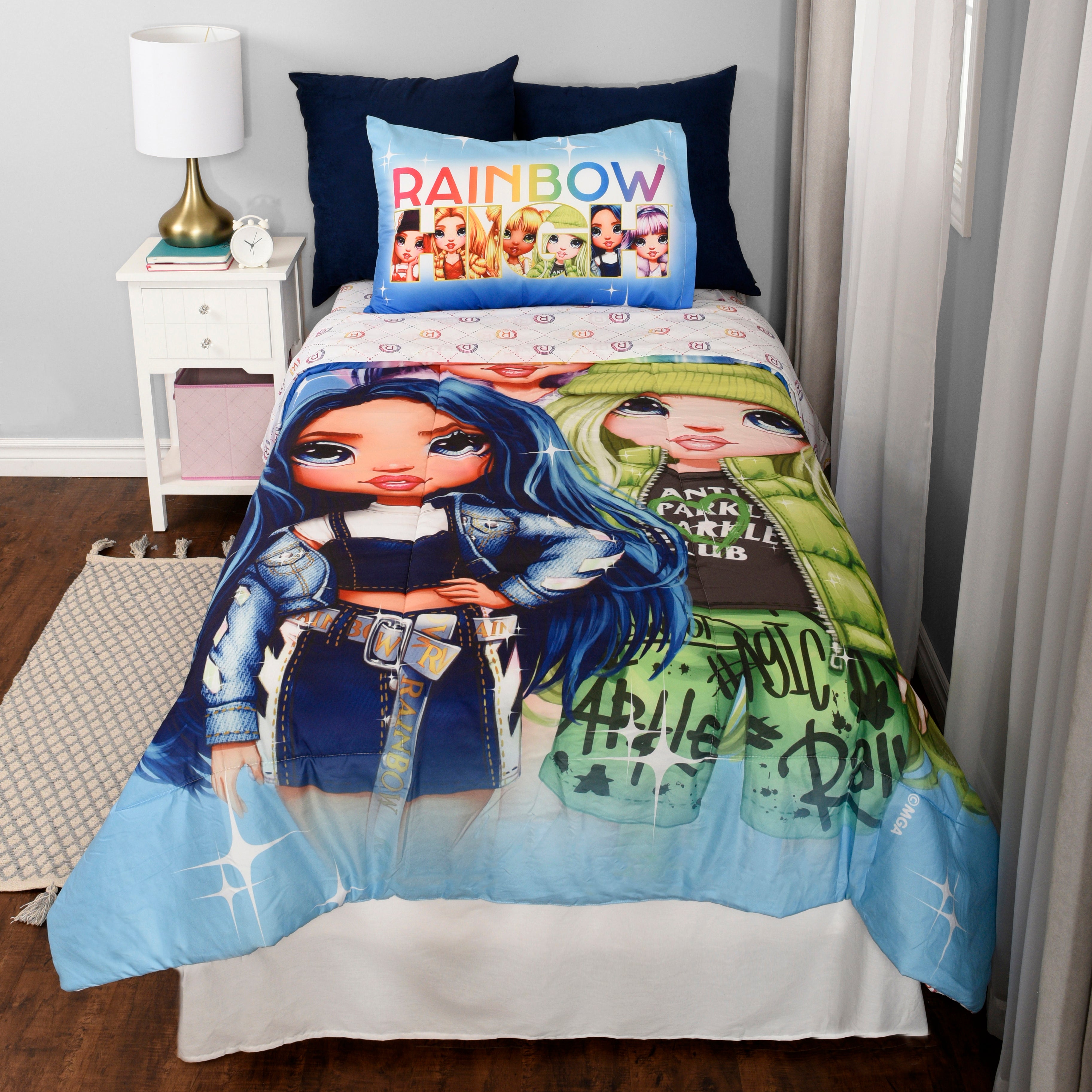 7. Rainbow High Kids Bedding Sheet Set with Reversible Comforter Twin Bed in Bag 4 Pcs Set for Kids