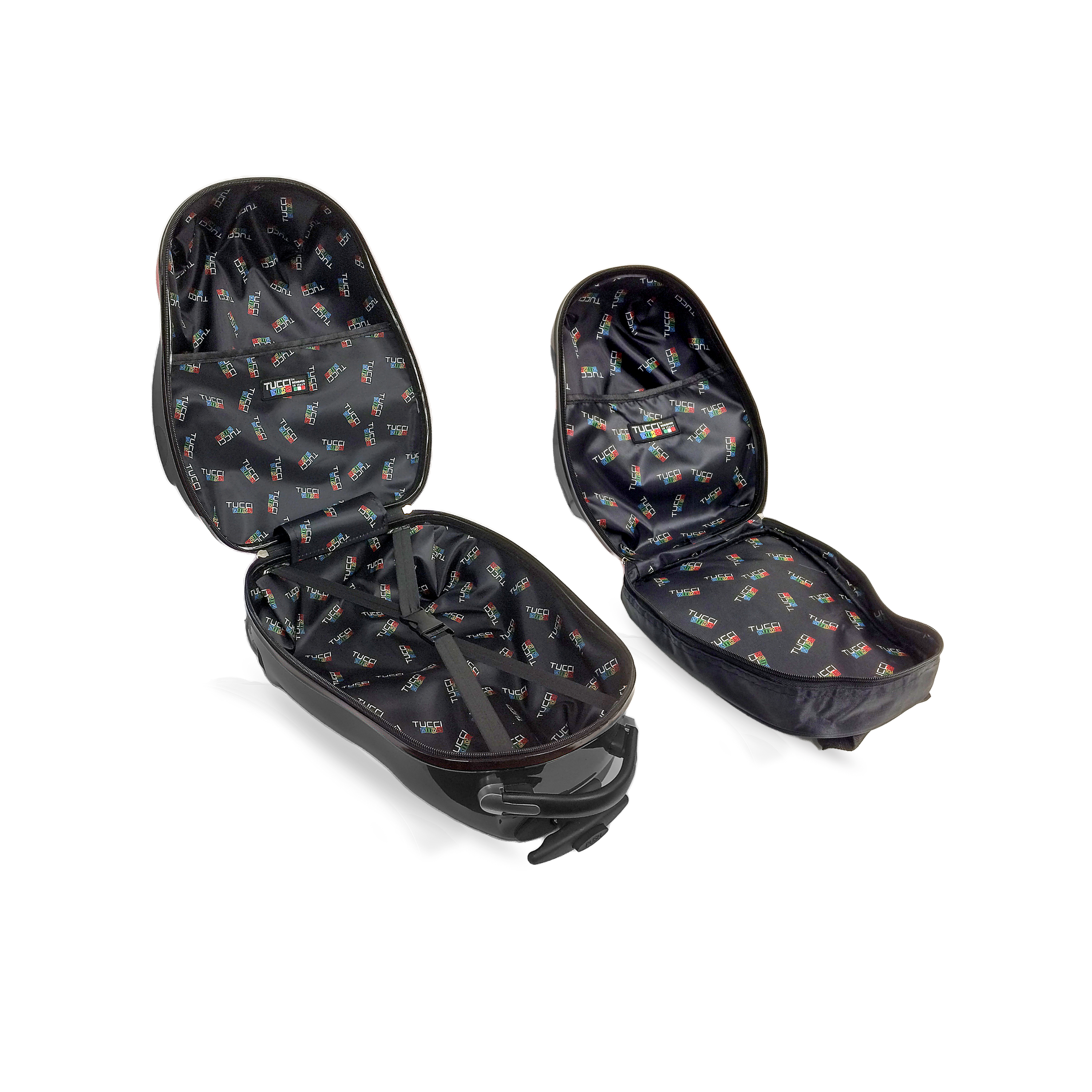 This Kids Backpack Set is the perfect travel companion for your little ones. The collection was created with the unique characteristics of children in mind, incorporating several design features that benefit children. the piece has been printed with colorful and vibrant artwork adding loads of fun to traveling for the kids and the entire family. The luggage print is protected by a layer of clear coat which also gives it a beautiful glossy shine. The patent-pending design of this case also allows the wheels to protrude out keeping the case elevated and preventing the bottom of the luggage from touching the ground. children can wheel these fun cases around, as they also feature our inline skate wheels that make rolling even smoother. Both the luggage and backpack piece have a zipper closure system when opened revealing a beautifully lined interior.