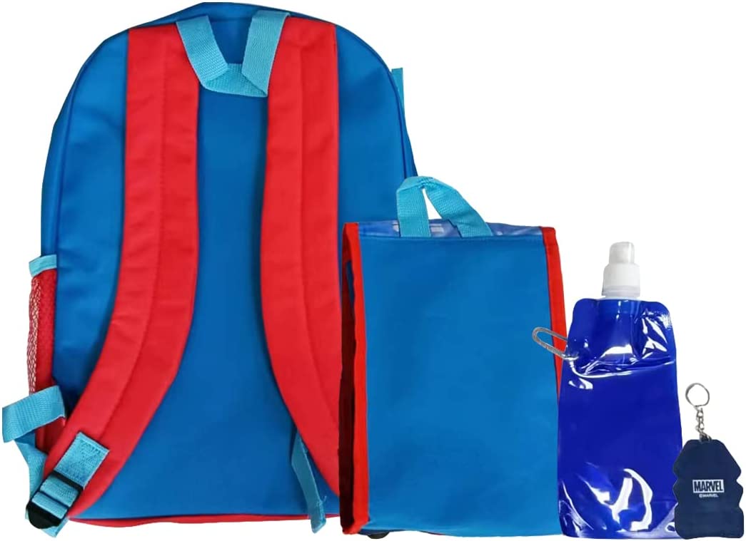 Our 5pcs Spiderman backpack set with a lunch bag, water bottle & two keychains is designed with the unique characteristics of children in mind. We all dream to be a superhero as a child, and every kid love's the feeling to be a mighty superhero like Spiderman. This backpack set will surely give them the feeling of a superhero. They can join the rescue mission and catch bad guys with Spiderman in their imagination. This bag is perfect to carry your kid's goods to school, traveling, hiking, or any other places they can take this backpack set with them. The backpack size is perfect for kids which makes it easy to carry. Also with an amazing Spiderman print-designed lunch bag, they will never forget to eat their food. This is a durable backpack it will stay with your child for a long time. Gift it to your children and see their happy faces of them.